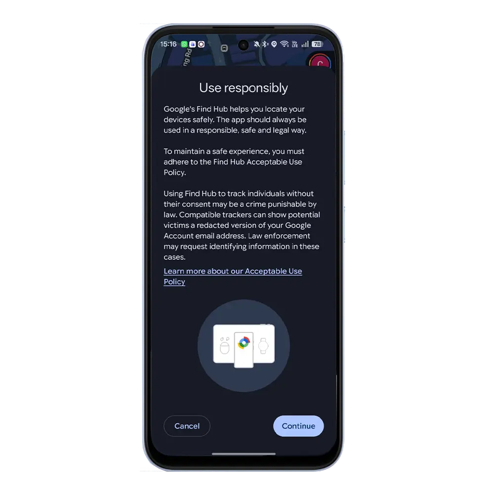 Track with Android’s crowdsourced network. Secure, private, and seamless—right from your phone