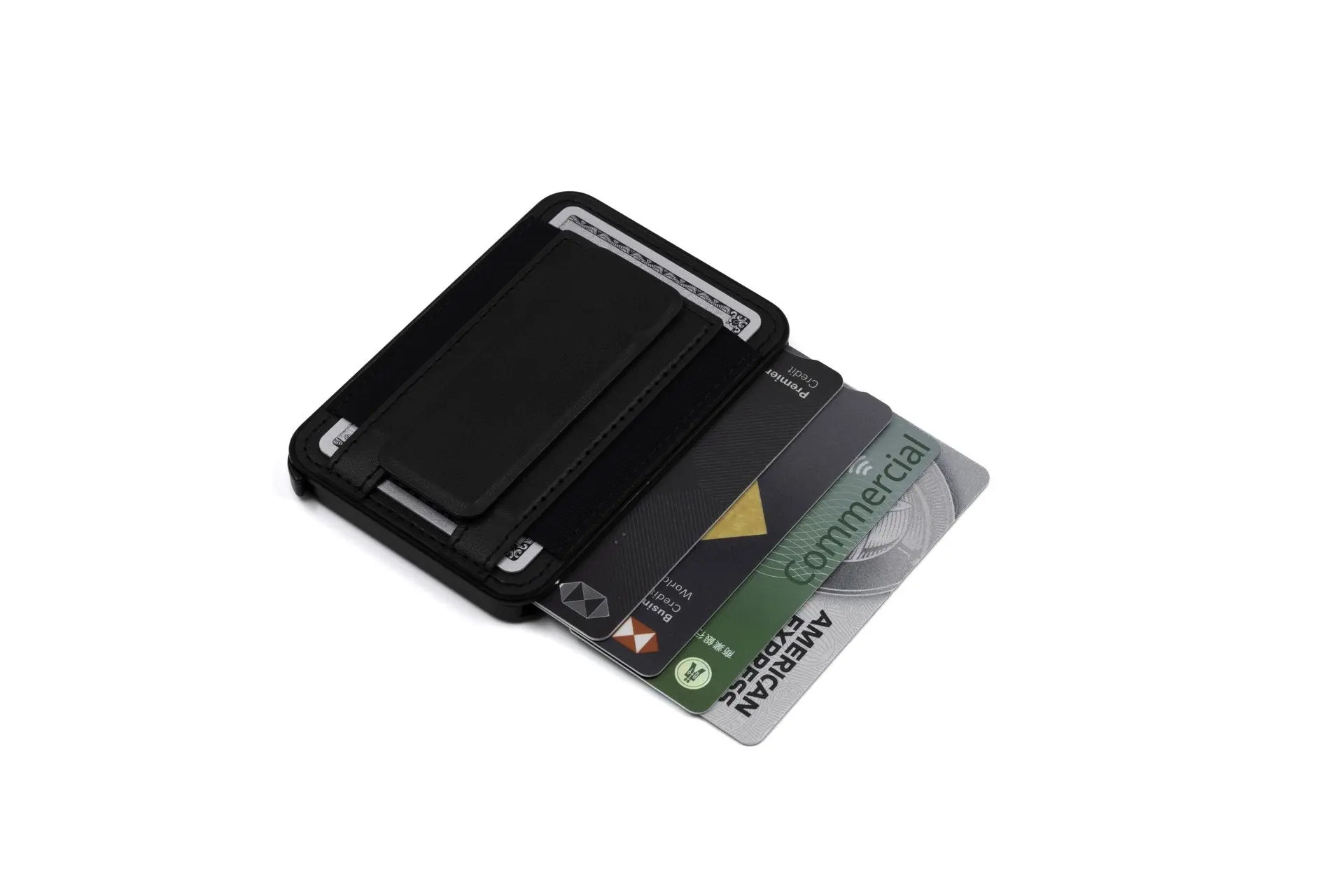 Crafted from premium recycled PU, this sleek, eco-conscious cardholder doesn’t just look good — it works smarter. Now upgraded with Quikdraw RFID-Secure Card Slider technology, Wally Stand Pro keeps your 4 most-used cards protected from digital theft, while letting you slide them out with a single, satisfying motion. Two additional cards tuck neatly into the quick-access front pocket — giving you six total, organized and ready.